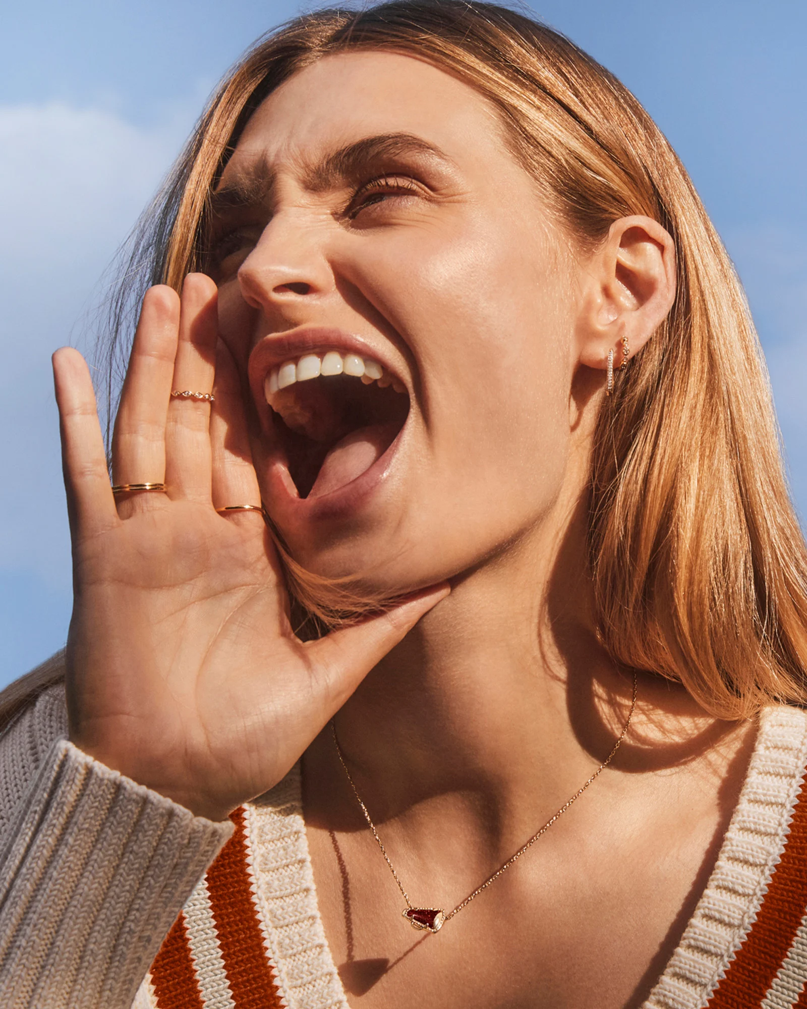 Give me a K! Give me an S! Give me a Cheer Gold Short Pendant Necklace in White Mother-of-Pearl! Minimal but full of cheer, this adorable megaphone pendant is framed by our signature hoofprint detailing for that special KS touch. Stack up some extra spirit and pair this pendant with styles in your team’s colors.