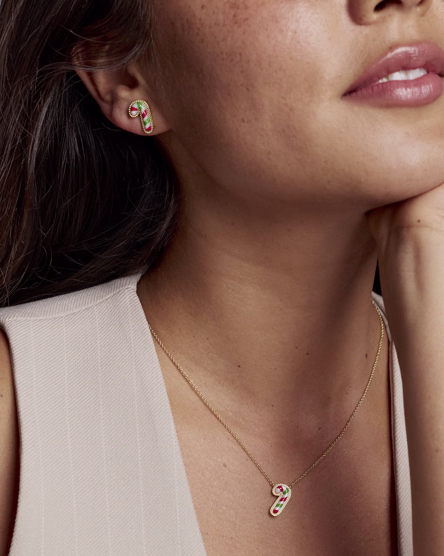 Candy Cane Gold Stud Earrings