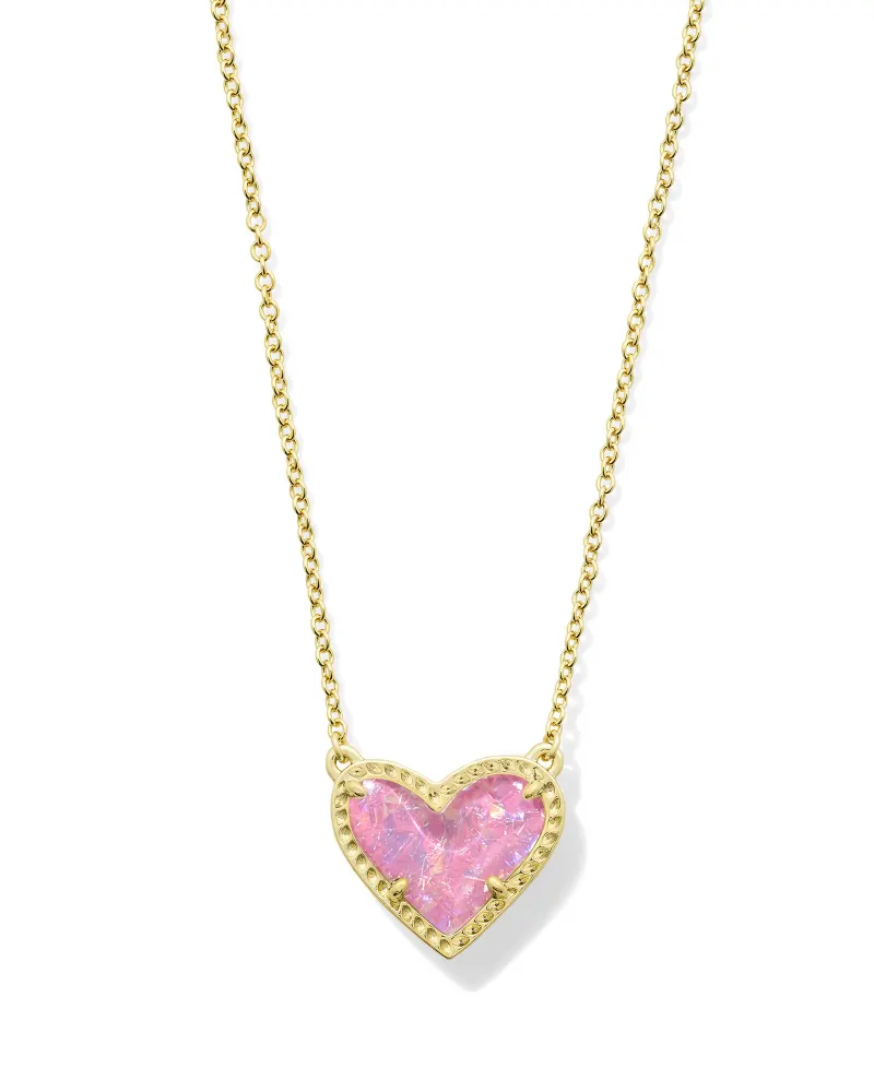 Ari Heart Gold Pendant Necklace in Bubblegum Pink Kyocera Opal