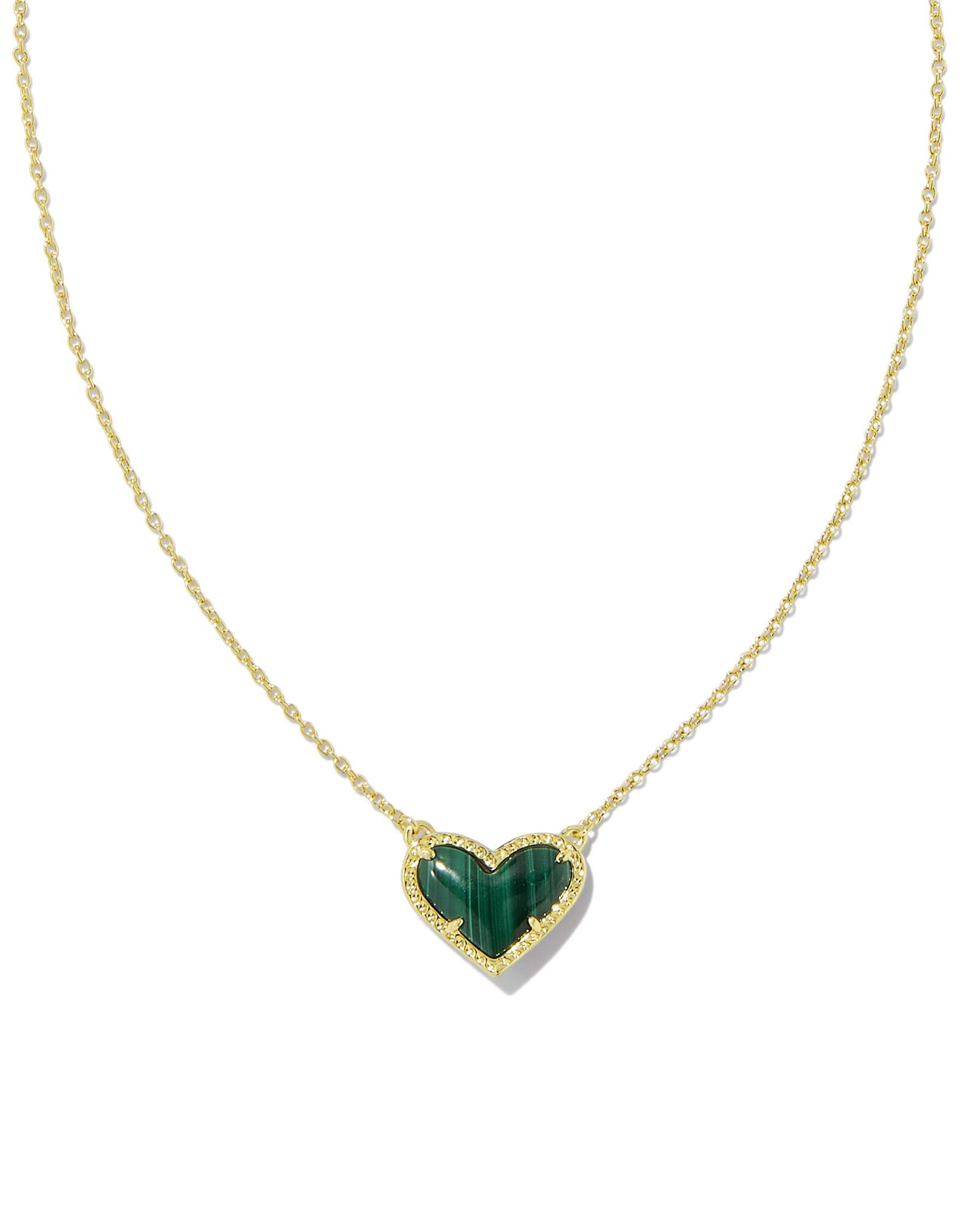Ari Heart Gold Pendant Necklace in Green Malachite