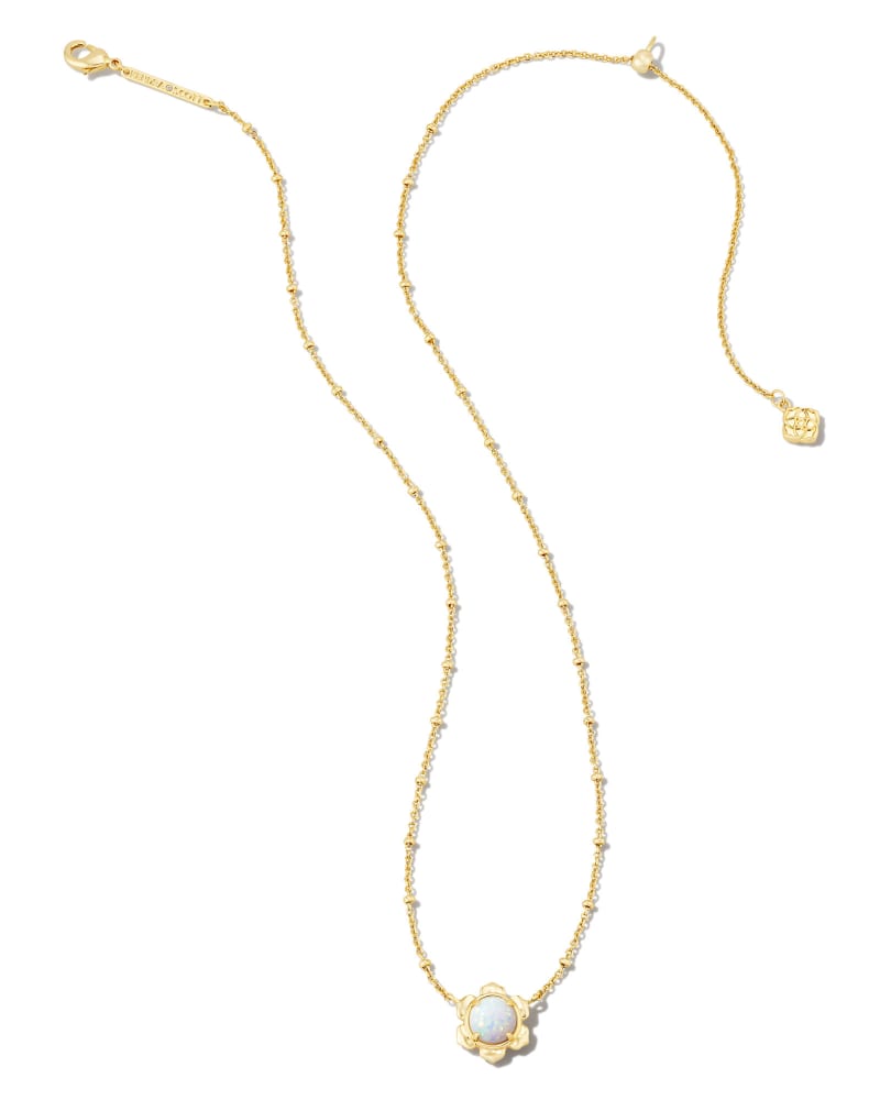Crafted with metallic petal details and a stunning Kyocera Opal center, the Susie Gold Short Pendant Necklace in Bright White Kyocera Opal strikes the perfect balance between retro and contemporary. Wear this delicate statement solo for a subtle pop of color or layered with other necklaces for a fun stack.
