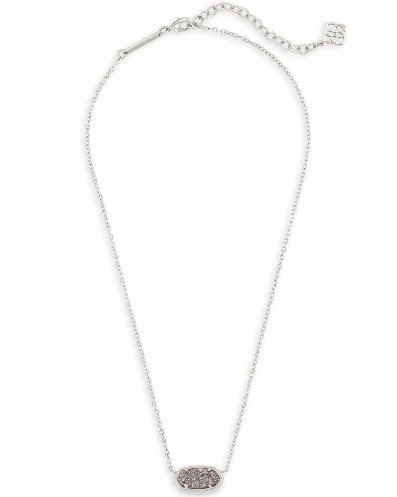 A dainty stone and delicate metallic chain combine to create the Elisa Silver Pendant Necklace in Platinum Drusy, your new favorite wear-anywhere accessory. This pendant necklace can be paired with any look, providing that extra touch of timeless style. Make the Elisa Silver Necklace a staple in your wardrobe and you will not be disappointed.