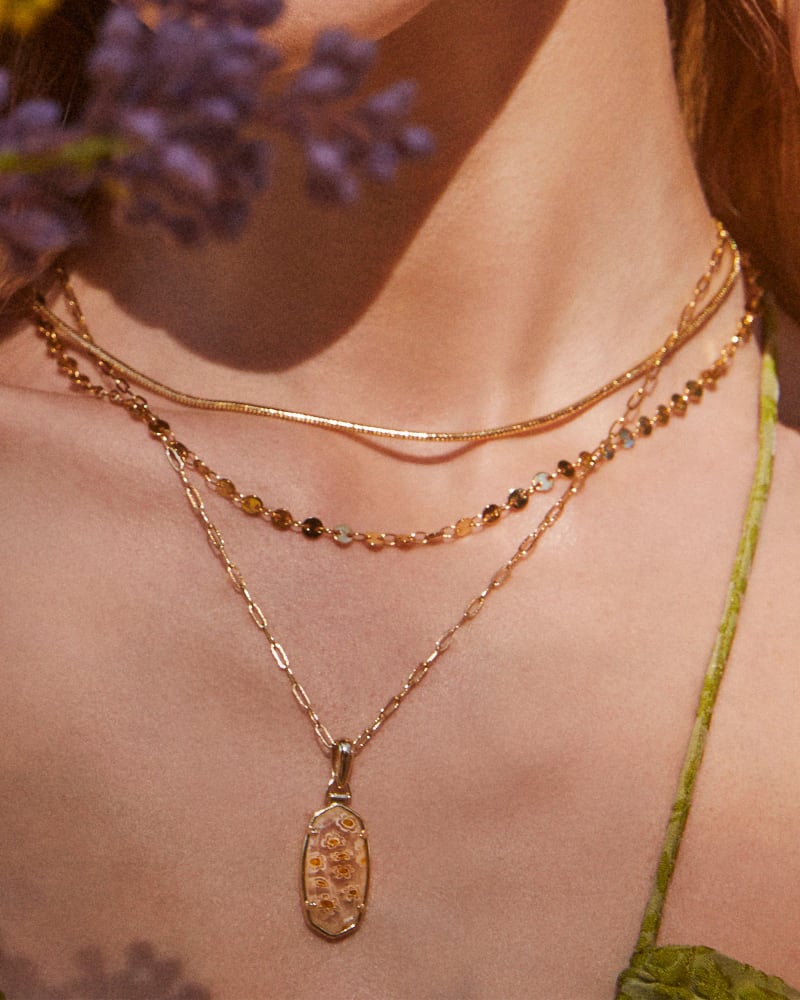 Layering has never been easier with the Framed Dani Gold Triple Strand Necklace in White Mosaic Glass. With a mix of removable chains and a framed, shimmering pendant, this necklace is the versatile statement your collection desires.