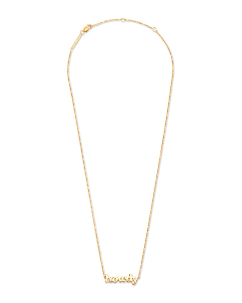 A staple southern greeting, the Howdy Pendant Necklace in 18k Yellow Gold Vermeil features a sweet sentiment that can be worn for years to come.