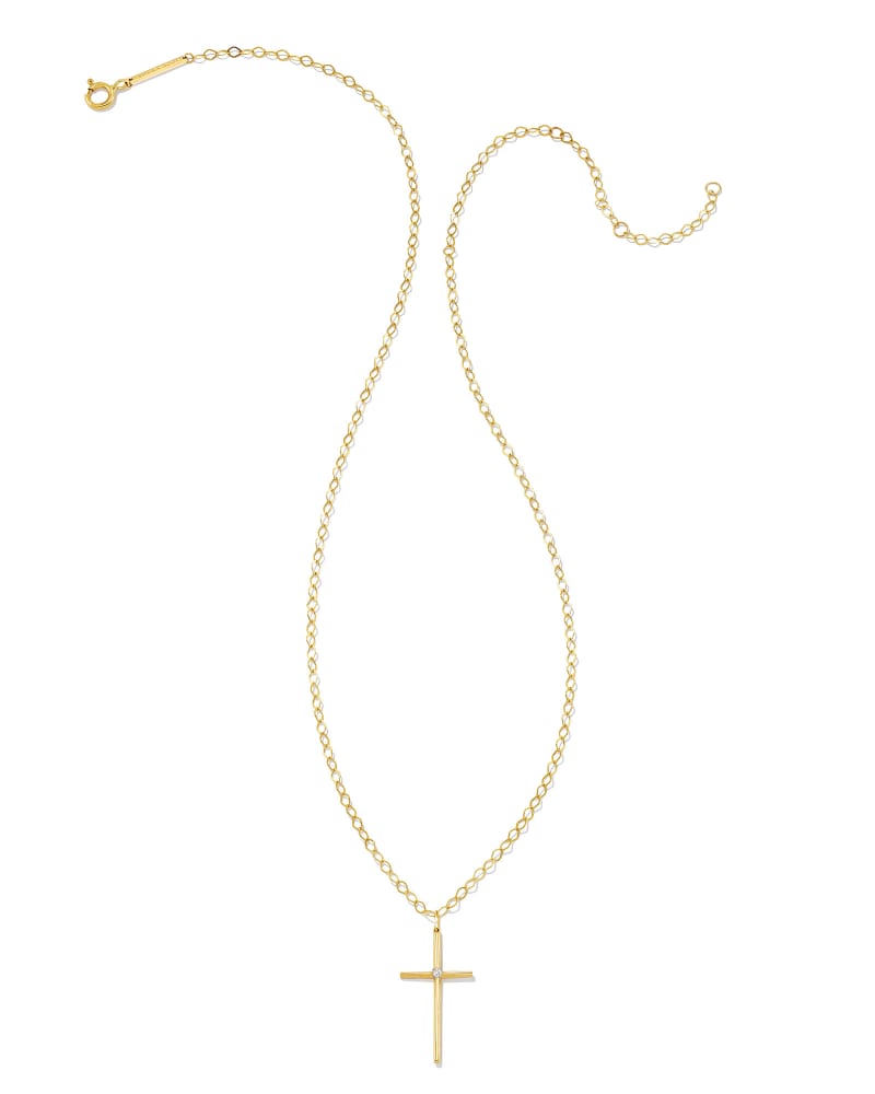 Keep the symbol that means the most to you right next to your heart. The Thin Cross 14k Yellow Gold Charm Necklace in White Diamond is a forever keepsake, featuring a diamond inlaid cross pendant.