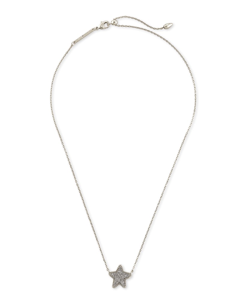 An iconic symbol and a jewelry box staple team up to create the sparkling Jae Star Silver Pendant Necklace in Platinum Drusy.