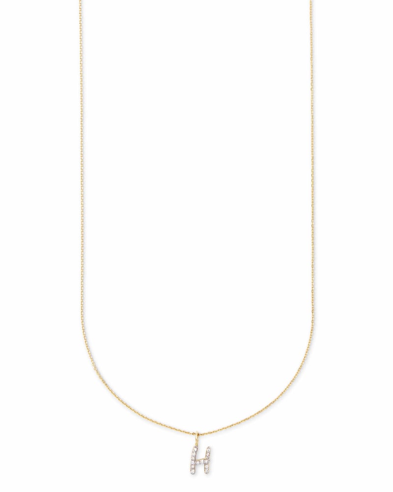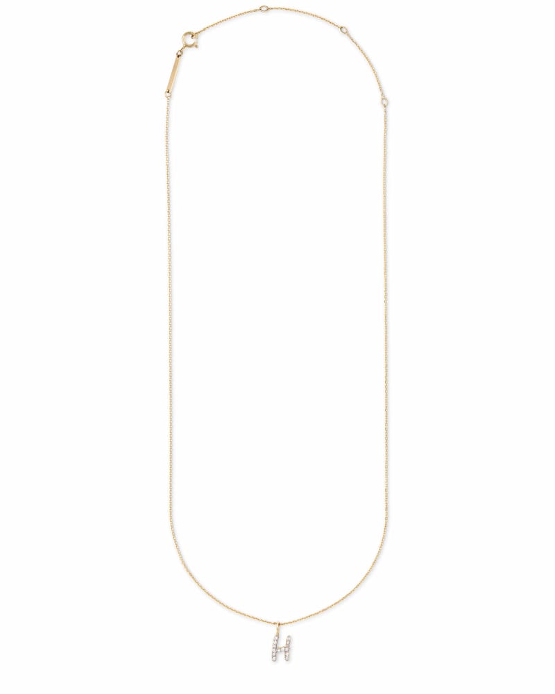 The Diamond Letter H Pendant Necklace in 14k Yellow Gold is a striking example of sentimental style. Beautifully timeless and personal to each wearer, the Diamond Letter H Pendant Necklace was designed to be treasured for a lifetime. To create these pendant necklaces, each letter is hand drawn in our Austin design studio, then layered with pave diamonds for breathtaking sparkle. Shop the Diamond Letter Pendant Necklace Collection