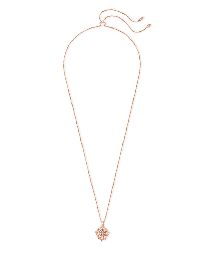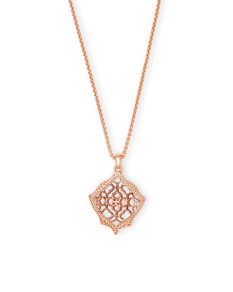 Kacey Rose Gold Long Pendant Necklace in Rose Gold Filigree