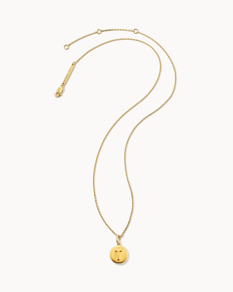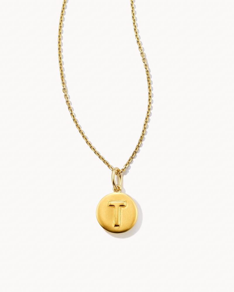 Letter T Coin Pendant Necklace in 18k Gold Vermeil
