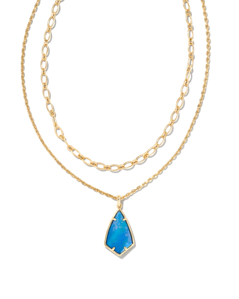 Camry Gold Multi Strand Necklace in Dark Blue Mother-of-Pearl