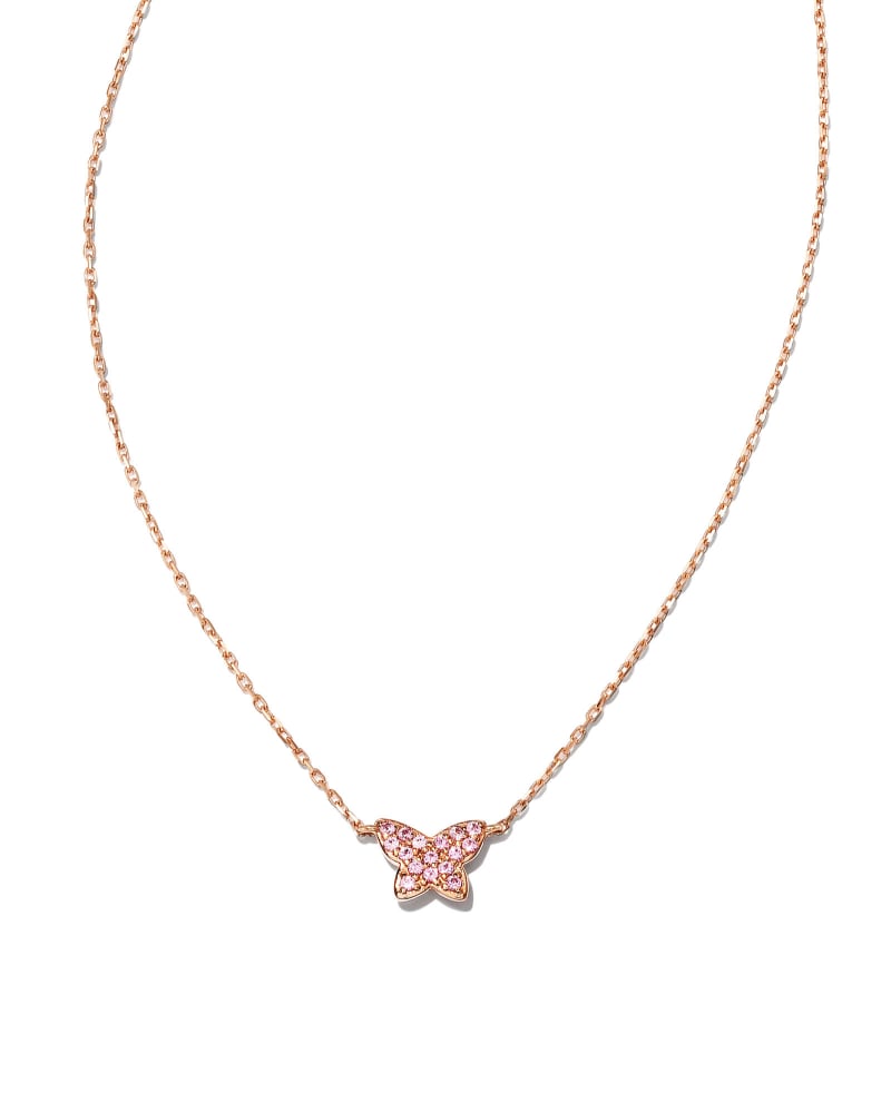Butterfly 14k Rose Gold Pendant Necklace in Pink Sapphire