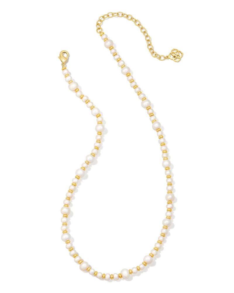 Jovie Gold Beaded Strand Necklace in White Pearl