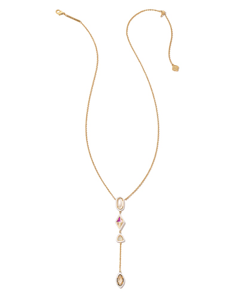Greta Gold Y Necklace in Ivory Mix