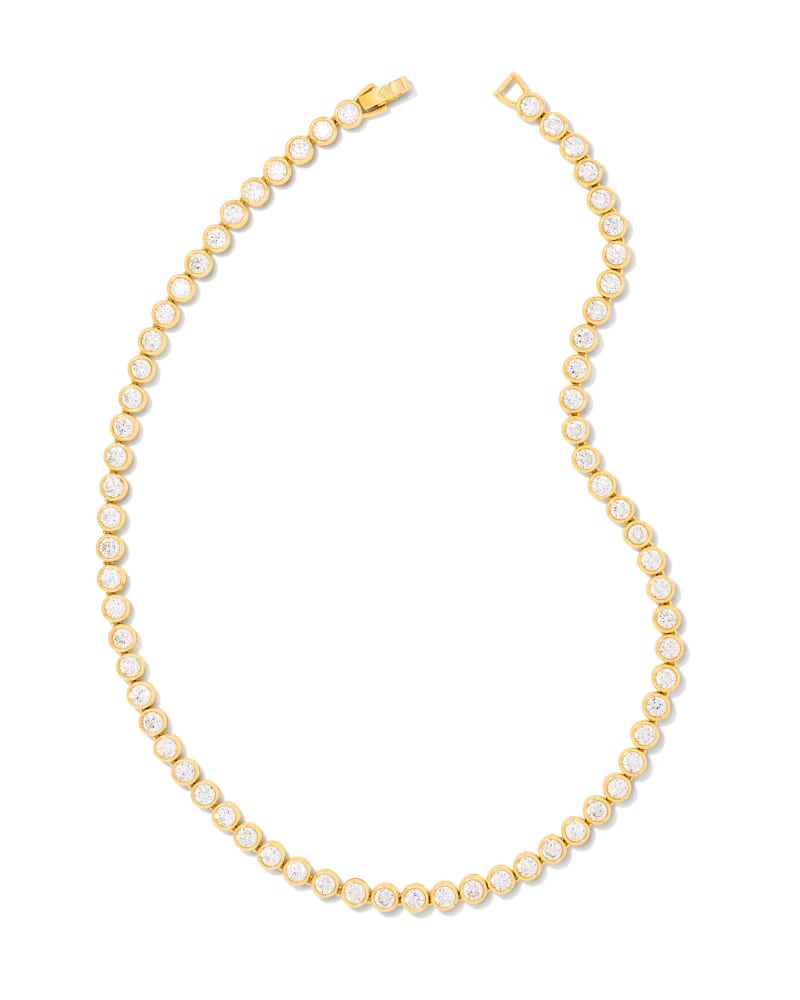 Carmen Gold Tennis Necklace in White Crystal