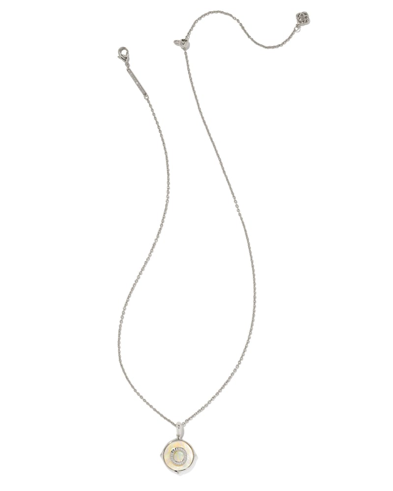 Letter O Silver Disc Reversible Pendant Necklace in Iridescent Abalone