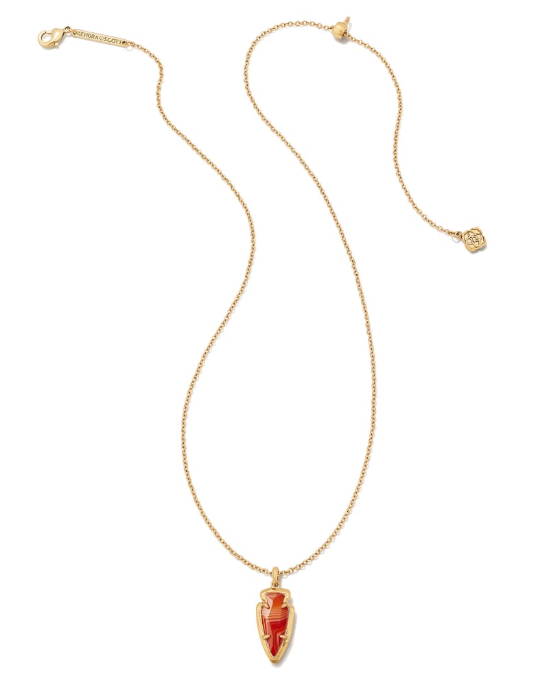 Skylar Vintage Gold Short Pendant Necklace in Orange Banded Agate