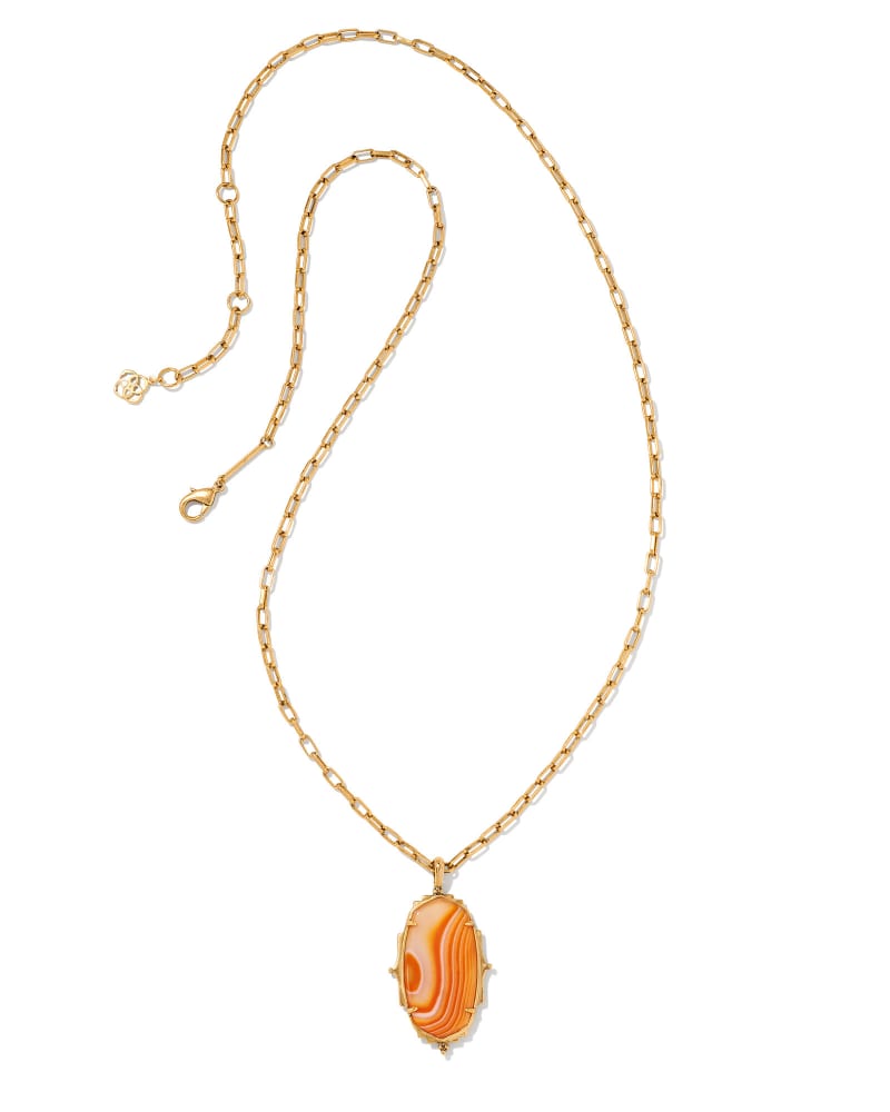Baroque Ella Vintage Gold Long Pendant Necklace in Orange Banded Agate