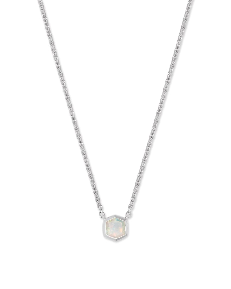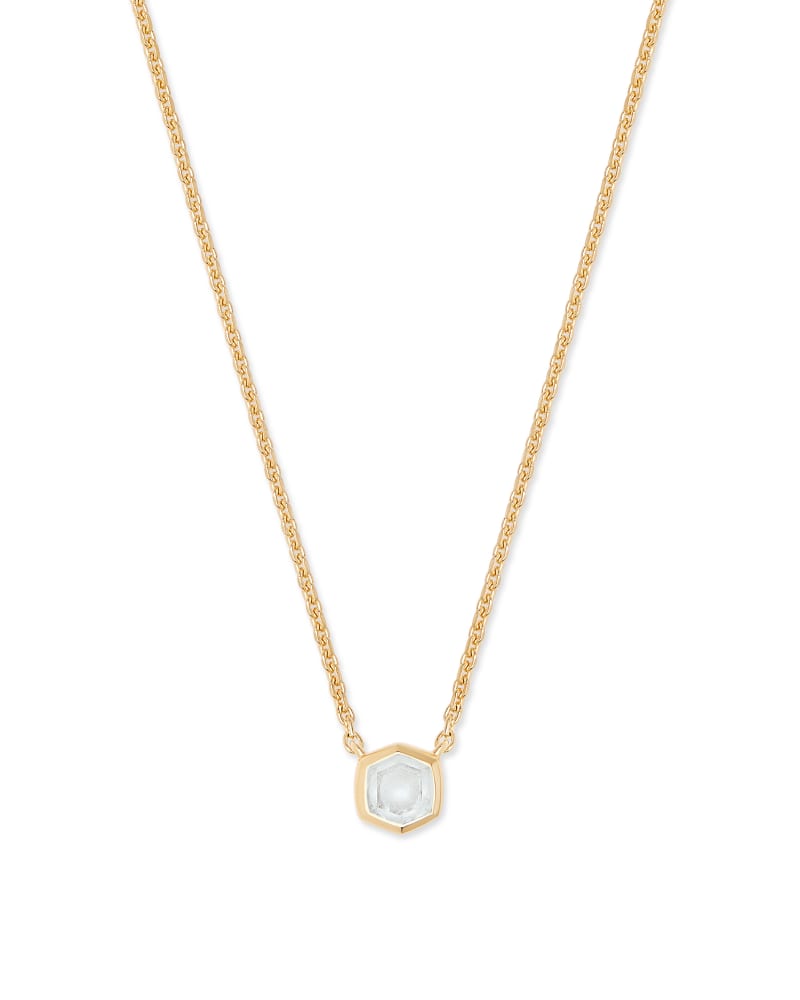 Elisa Gold Pendant Necklace in White Kyocera Opal