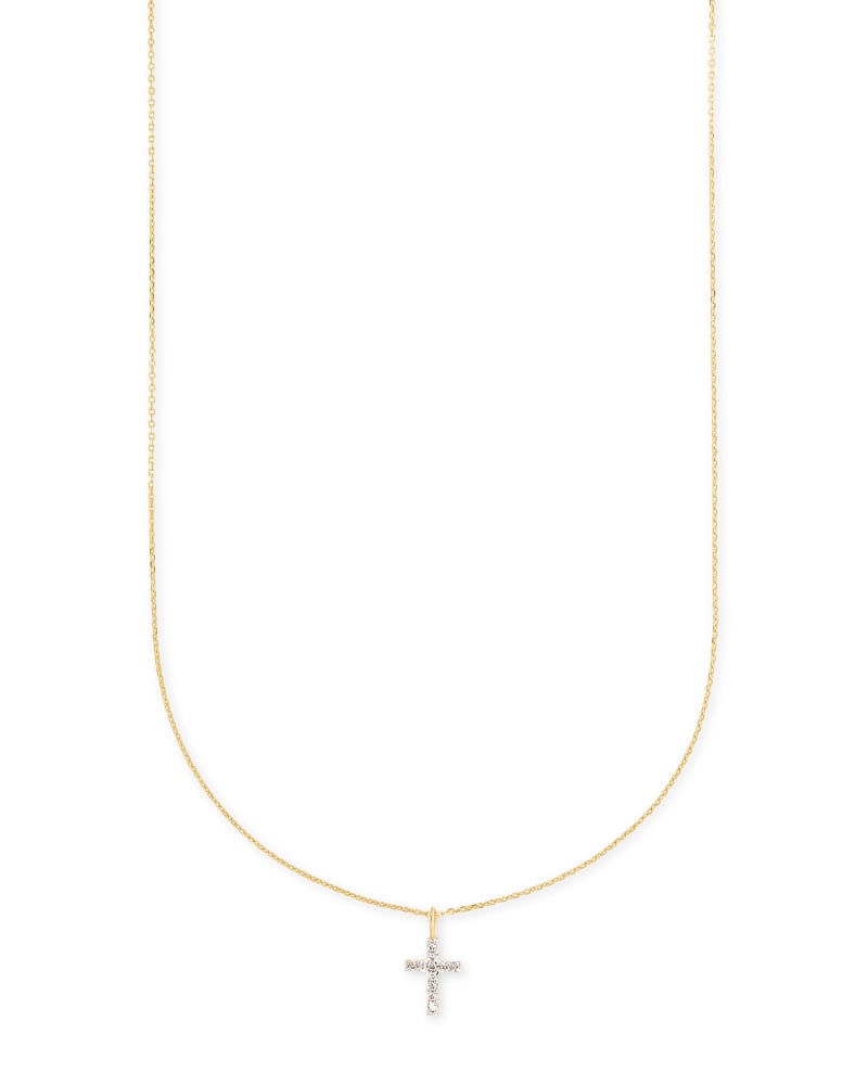 Cross 14k Yellow Gold Pendant Necklace in White Diamonds