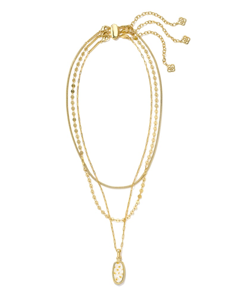 Framed Dani Convertible Gold Triple Strand Necklace in White Mosaic Glass