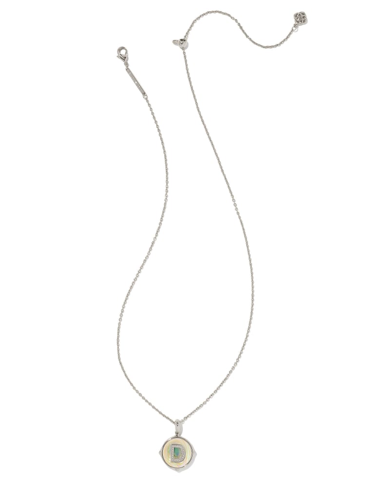 Letter D Silver Disc Reversible Pendant Necklace in Iridescent Abalone