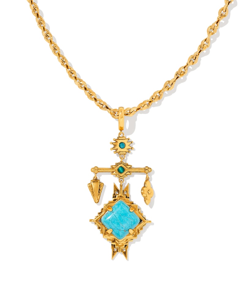 Cass Vintage Gold Large Long Pendant Necklace in Variegated Dark Teal Magnesite