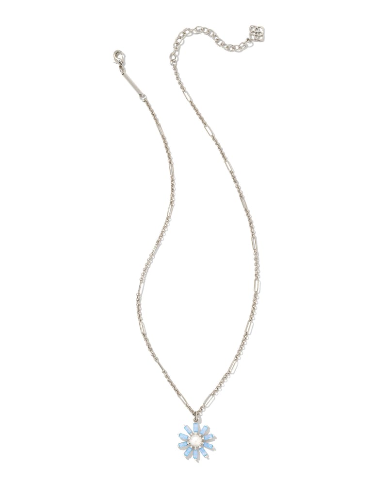 Madison Daisy Bright Silver Short Pendant Necklace in Light Blue Opal Crystal