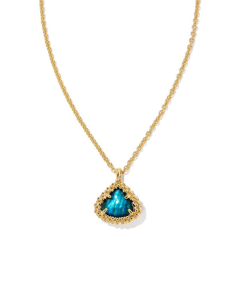 Framed Kendall Gold Short Pendant Necklace in Teal Abalone