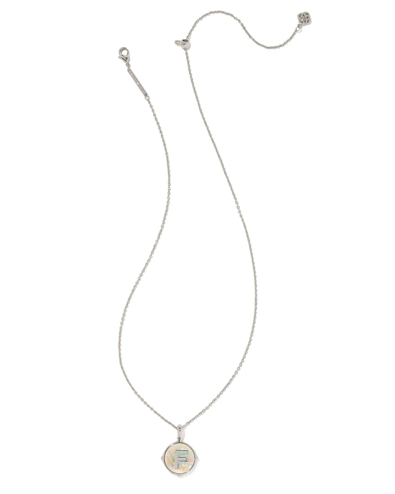 Letter F Silver Disc Reversible Pendant Necklace in Iridescent Abalone
