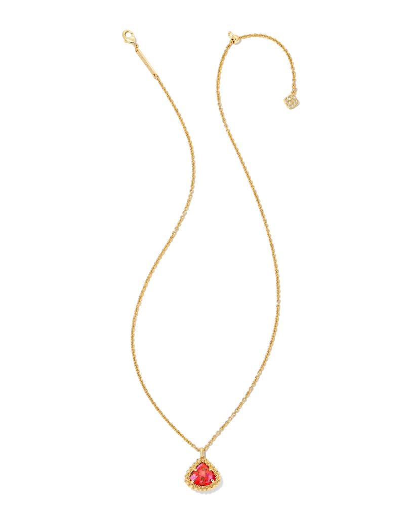 Framed Kendall Gold Short Pendant Necklace in Bronze Veined Red and Fuchsia Magnesite
