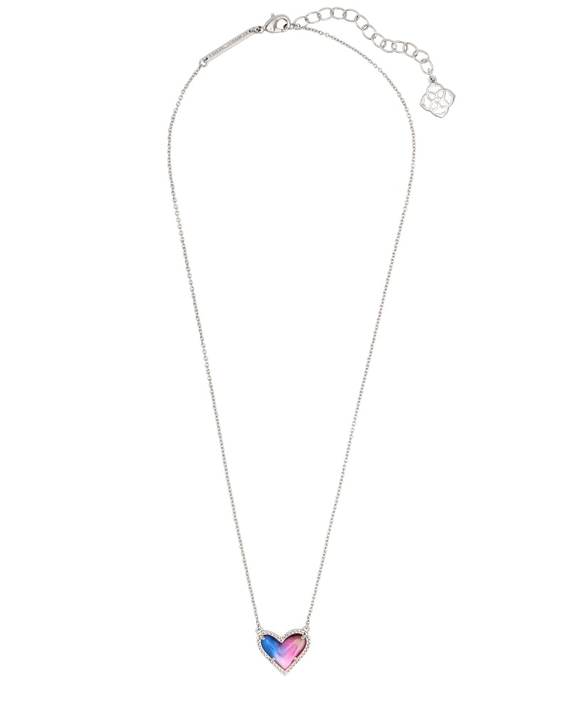 Ari Heart Silver Pendant Necklace in Watercolor Illusion