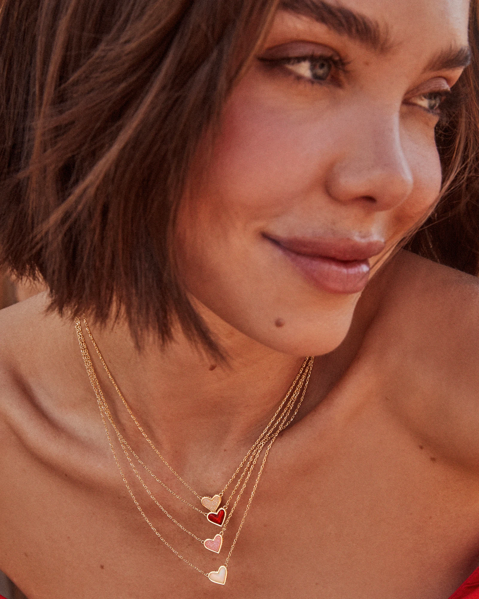 The bestseller you know and love, now in a flirty new design! The Framed Ari Heart Gold Short Pendant Necklace in Azalea Illusion features a smaller heart shape in a sleek metal frame embellished with our signature hoofprint detailing. Dainty and oh-so-sweet, this pendant will add a touch of romance to your necklace stack.