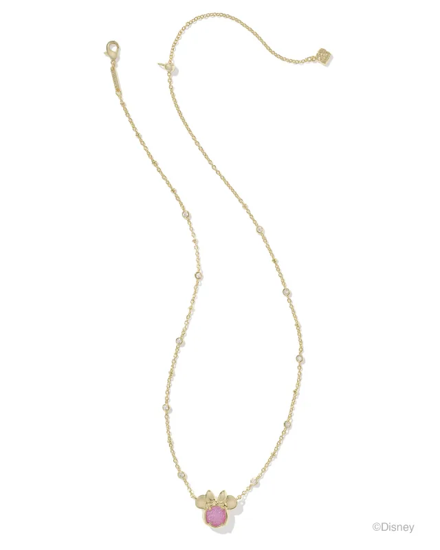 With the Disney | Kendra Scott Gold Minnie Mouse Short Pendant Necklace in Hot Pink Drusy, there’s a whole lot of happy to go around. As fashionable as it is fun, this pendant features the signature Kendra Scott Davie stone shape, adorable ear motifs, and a dainty bow detail. You’ll be as chic and sweet as Disney’s Minnie Mouse herself every time you wear this precious style.