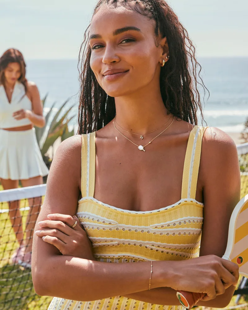 A pickleball pendant—you read right. With the Pickleball Silver Short Pendant Necklace in Ivory Mother-of-Pearl, it’s always your turn to serve. A shimmering paddle pendant is centered on a delicate chain, with a dainty pickleball motif set adjacent to it. Pro styling tip: snag an extra to match with your doubles partner off the court.